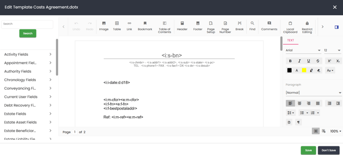 If you find the wrong information is coming out, you have used the wrong code. Similarly, if in the spot you were expecting information (e.g. settlement date) blank, then you will need to check you used the correct code and also that the matter for which you are generating the document for has data in the corresponding field.
