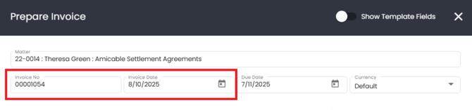 - If you want to change the invoice date, you can do that also, see screenshot below: