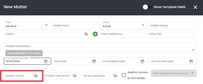 To ensure accurate reporting, make sure to assign the appropriate partner as the Matter Owner when setting up each matter. You can do this by selecting them in the following section: