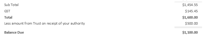 This is useful when wanting to show the client how much is applied from Trust to the invoice and the remaining outstanding amount they would need to pay.
