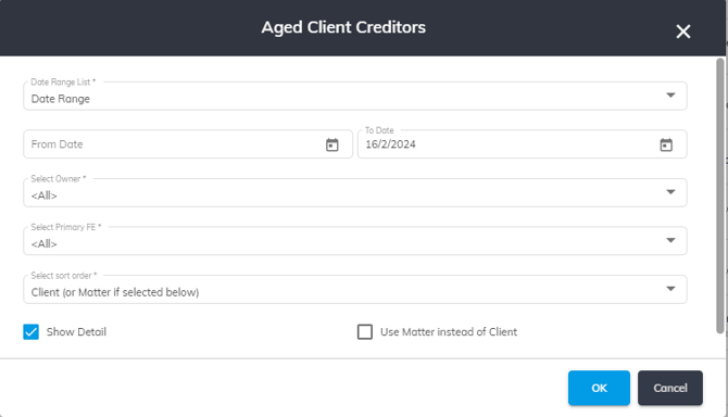 Regular use of the Aged Client Creditors Report helps your firm stay financially accountable, ensures disbursements are managed appropriately, and supports compliance with both internal policies and client expectations.