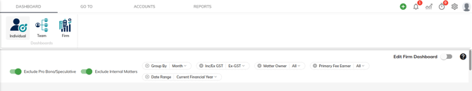 5. Matter Owner - When choosing this option it will only show you numbers where the selected user is the matter owner. E.g. if your firm has 200 matters and 70 of those matters has the selected user as the matter owner, then the dashboard will be filtered to show the relevant numbers for those 70 matters only.