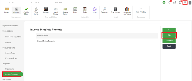 - Click on Edit to edit the default template (If you would like to create a new template, click on new)